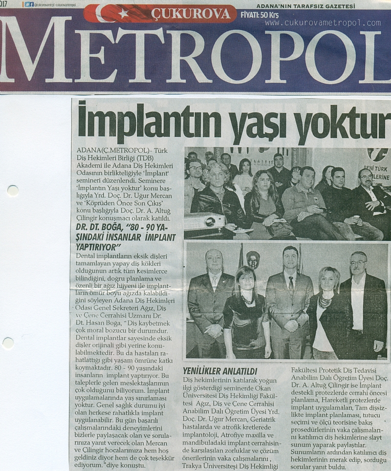 22 Şubat 2017 Tarihinde Odamızda "İmplant Üstü Protezlerde Simantasyon,Komplikasyonlar ve Çözümleri" Konulu Seminer Tdb Akademi-Adana Diş Hekimleri Odası İşbirliği ile Bilimsel Etkinlik Yapıldı