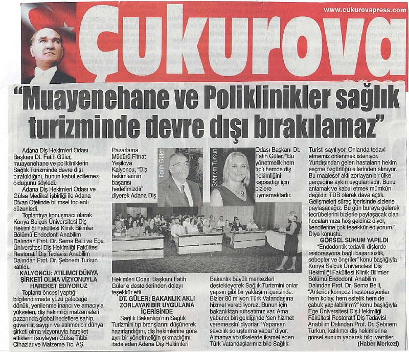 Türkiye’nin değişik bölgelerinden akademisyen ve alanlarında uzman diş hekimlerinin katılacağı “Çukurova Diş Hekimliği Günleri (ÇUDİG)” Adana Diş Hekimleri Odası ev sahipliğinde Adana Sheraton Otelde ...