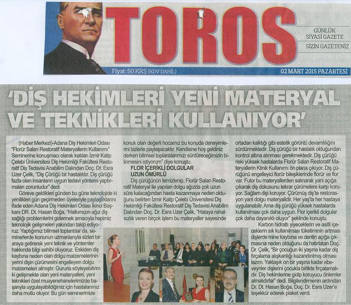 27 Şubat 2016 Tarihinde Doç.Dr. Uğur Erdemir "Anterior Bölge Dişlerde Renk Kavramı ve Kompozit Restorasyonlar" Konulu Semineri